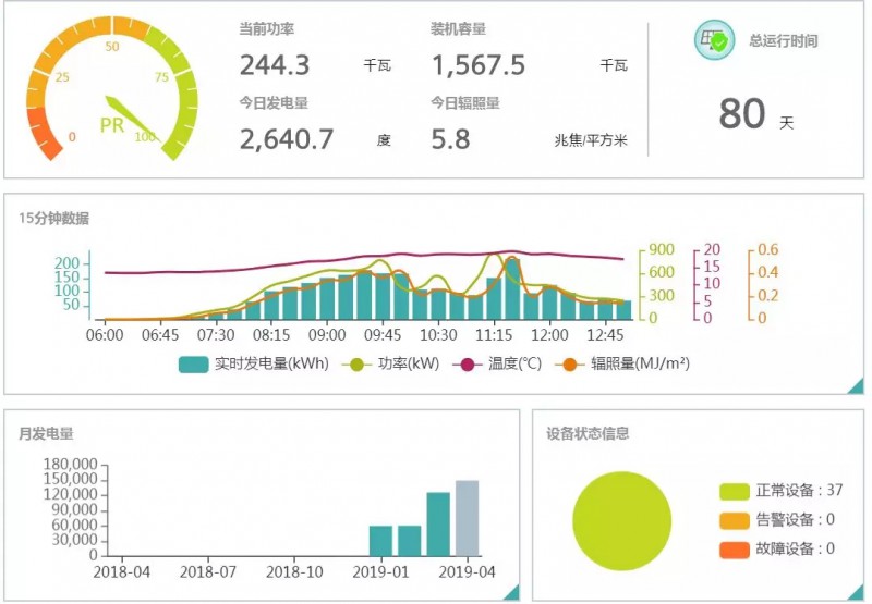 在光伏数字化的浪潮下,互联网、大数据、人工智能等与光伏产业深度融合,智控关断器的应用使该光伏电站实现了全电站无人值守级别的运维管理和调度。智控关断器及网关设备可将电站中的组件、逆变器、电表等电器设备的信息实时上报到西门子DSOP监控平台,从而实现了组件运行的可视化。同时,基于强大的大数据诊断功能,该平台实现了对光伏组件的在线运行诊断,实现组件级别的运行异常定位,对“问题”组件发出实时异常告警,提升电站的运维效率。