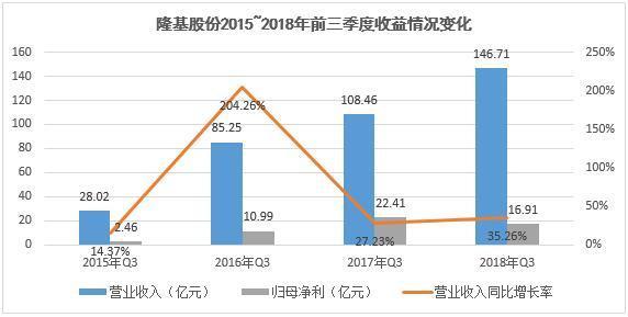 观察隆基股份收益情况变化可以发现,2018年前三季度,其业绩受产品价格下降的影响,出现了明显的同比下降。但由于采用了以量补价的市场策略,产品借机扩展了市场占有率,出货量大幅提升,营业收入保持了同比增长的稳定。