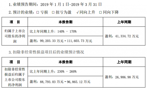 扣除非经常性损益后归属于上市公司股东的净利润为8.88亿-9.69亿元,同比增长230%-260%。
