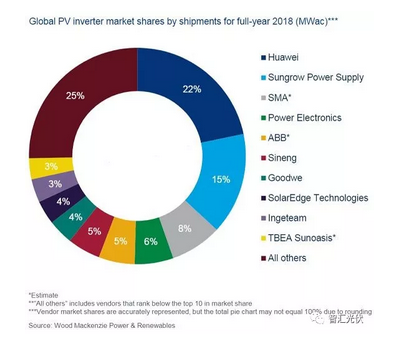 在两三年前华为大力推广组串式逆变器应用在地面电站的时候,曾经和阳光电源发生了较大宣传斗争,甚至在逆变器排名问题上“大打出手”,留下了逆变器都卖到火星上了的传言。集散式逆变器以技术出发,宣传集合了集中式和组串式逆变器的优势,在大型地面电站领域也取得了较大的市场份额。