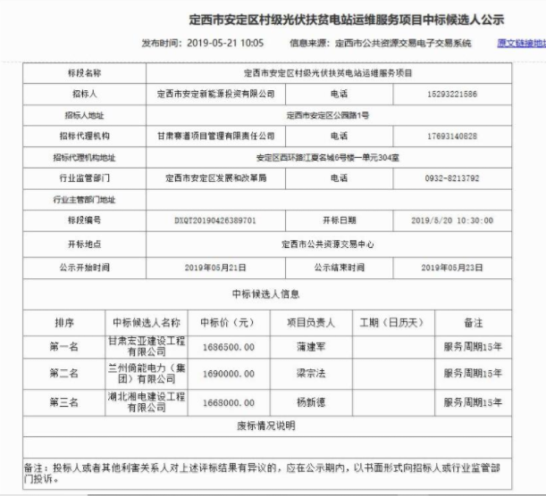 根据招标文件披露,本项目针对2017年-2019年建设的装机规模32673千瓦的村级光伏扶贫电站运营维护管理,主要内容是安装电站监测信息接入系统,对电站设备(光伏组件、支架、逆变器、汇流箱、变压器、计量系统,以及所属电气设备)运行进行实时监控;进行日常巡检(包括安全、防汛、防雷、防寒、消防等专项检查)和故障处理;清洗光伏组件、清除场区杂草、维修更换损坏设备,保证电站正常搞笑运行;对电站发电数据进行统计,分析影响发电的原因,制定合理消缺方案;做好电站运维文档管理、人员培训等工作。