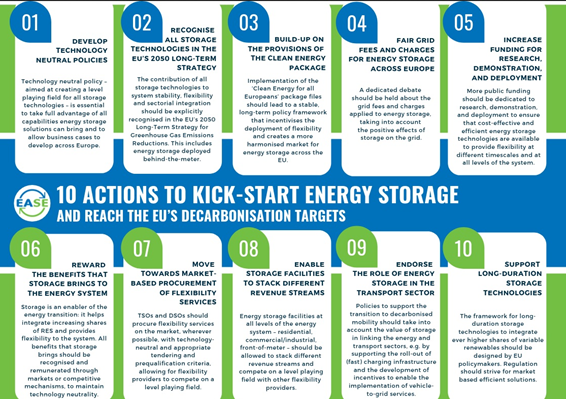 此外,欧盟制定了欧洲能源目标和欧盟2050长期战略,旨在届时实现净零温室气体排放。欧洲储能协会(EASE)为欧盟倡议并提出了这些计划,并表示当前至关重要的是在过去的基础上继续努力。
