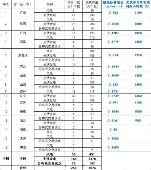 图表:2019 年第一批风电、光伏发电平价上网项目信息汇总表。