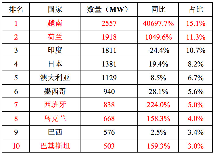 新兴市场墨西哥、澳大利亚、土耳其、阿联酋等将对我国光伏产品出口产生拉动效应。