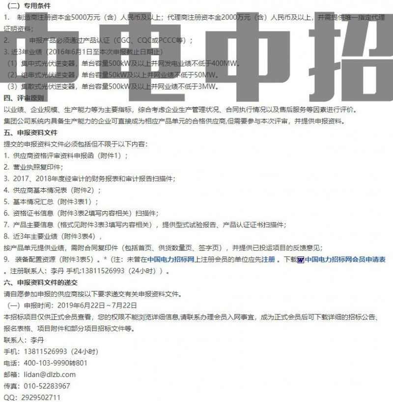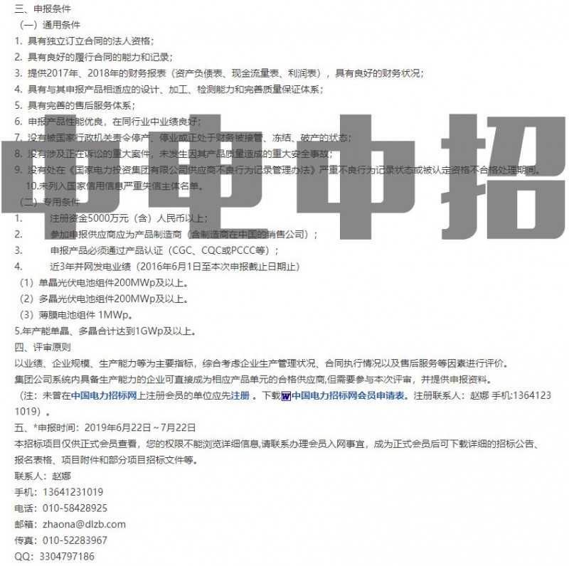 其中,逆变器包括集中式、集散式以及组串式,光伏组件包括单晶、多晶以及薄膜组件。根据公告,申报时间为:2019年6月22日-2019年7月22日,注册资本金须5000万元(含)人民币以上。