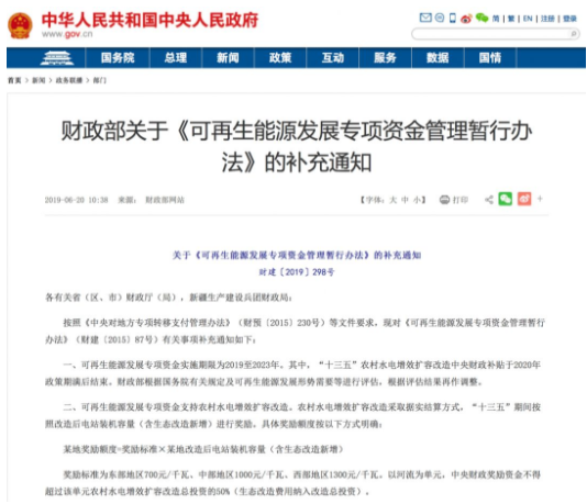 与常规能源相比,可再生能源的发电成本相对较高。政府在该行业发展前期采取补贴措施加以扶持,是国际上的通行做法,在我国,主要采取“标杆电价+财政补贴”的方式,补贴资金来源于可再生能源电价附加。