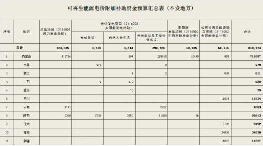 同时发布的还有《可再生能源电价附加资金预算汇总表》,内蒙古、吉林、浙江、广西、四川、重庆、云南、陕西、甘肃、新疆、青海11个省份(自治区、直辖市)2019年的补贴资金预算为81亿元。
