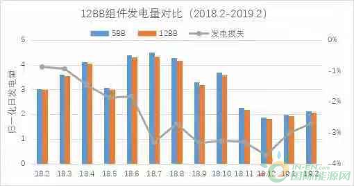 根据某组件厂家分别对12主栅和5主栅单面组件、18主栅和5主栅双面组件的发电量进行的对比发现,在13个月的发电测试中,12主栅单面组件竟然比5主栅单面组件发电量低2.41%。在另一组长达7个月的发电测实测中,18主栅双面组件同样比5主栅双面组件发电量低2.47%。