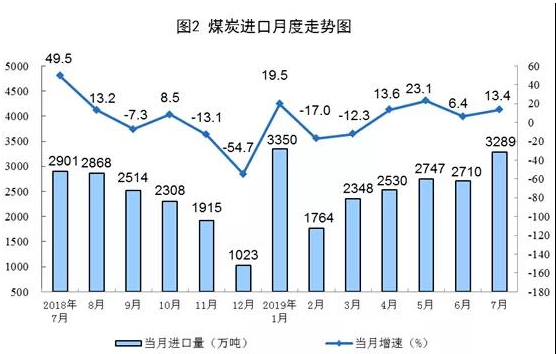 7月份,进口煤炭3289万吨,同比增长13.4%,比上月增加579万吨;1—7月份进口煤炭18736万吨,同比增长7.0%。