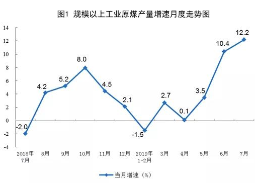 7月份,原煤产量3.2亿吨,同比增长12.2%,增速比上月加快1.8个百分点;日均产量1039万吨,比上月减少72万吨。1—7月份,原煤产量20.9亿吨,同比增长4.3%。
