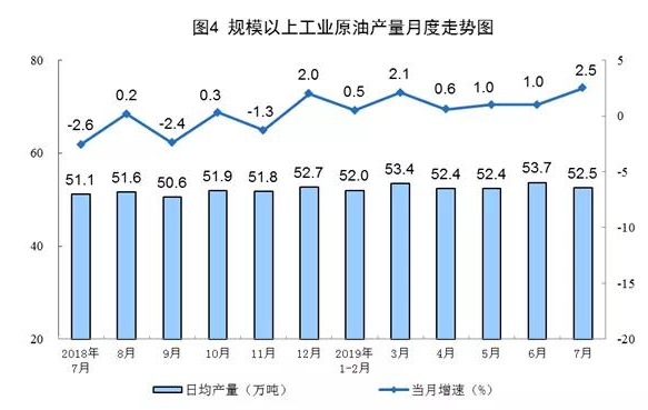 7月份,生产原油1629万吨,同比增长2.5%,增速比上月加快1.5个百分点;日均产量52.5万吨,比上月减少1.2万吨。 1—7月份,生产原油11131万吨,同比增长1.0%。