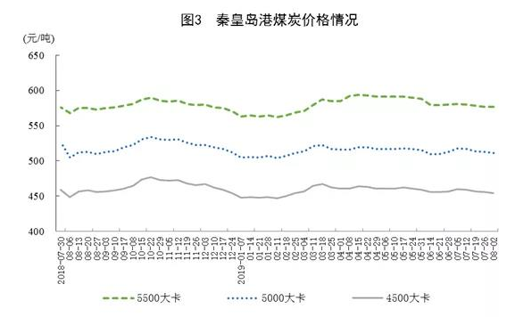 煤炭价格小幅回落。8月2日,秦皇岛5500大卡煤炭综合交易价格为每吨577元,5000大卡为每吨511元,4500大卡为每吨454元,比6月28日分别回落3元、2元和3元。