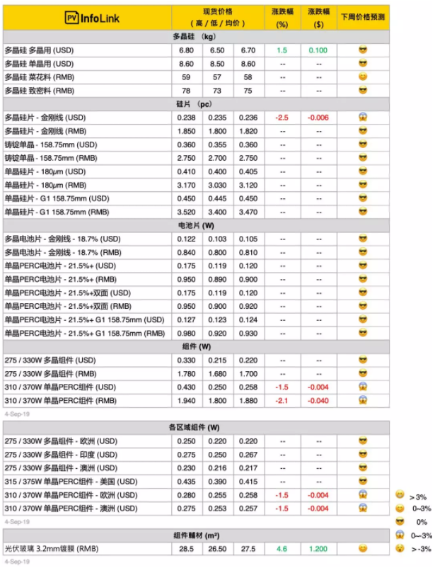 PV Infolink现货价格信息中,人民币价格皆为中国内需报价,而美金显示之价格则为非中国地区的海外价格,并非人民币直接换算美金。