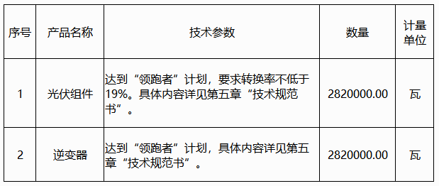6.3 供应商提供的光伏组件和逆变器应采用国家资质检测认证机构认证的产品,应采用达到“领跑者”技术指标的先进技术。