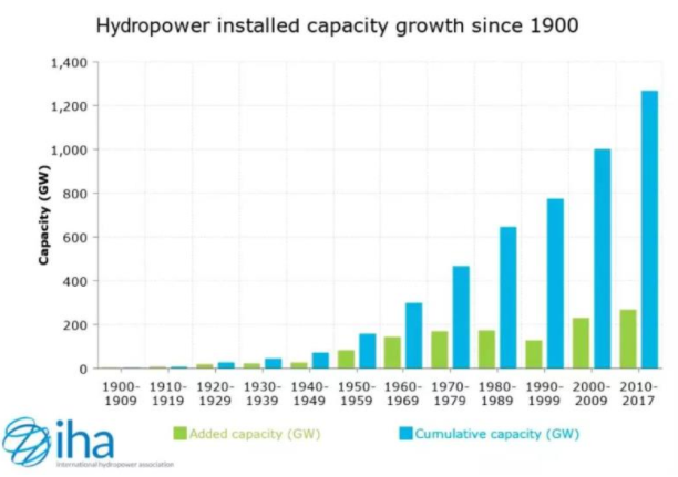 水坝在美国已被用于产生可再生能源已有一个多世纪的历史,世界上第一座水力发电厂于1882年在威斯康星州开始运营。到1940年,水力发电已占美国发电量的40%。目前水力发电依然是美国电力结构中不可或缺的组成部分,贡献超过6%的电力,并具有其他可再生能源并不总是具有的灵活性。