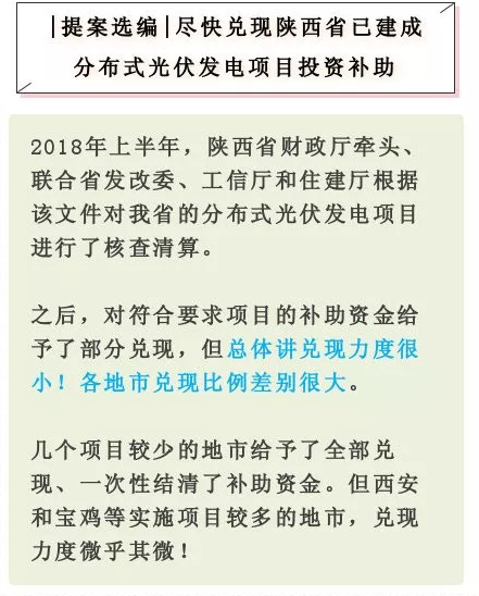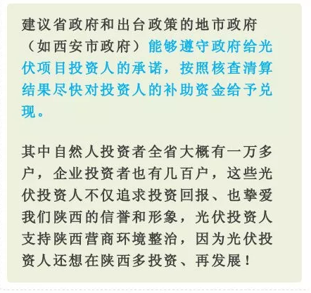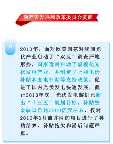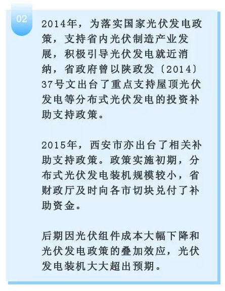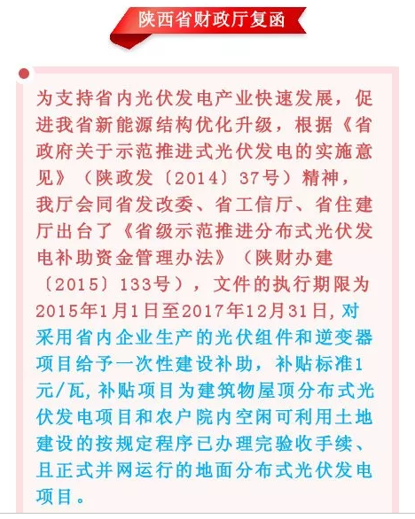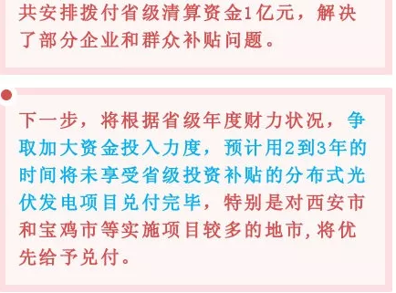 包括陕西省在内,目前,国家正在积极落实光伏补贴相关政策。国家能源局指出,各省级电网企业应做好所辖经营区域2019年国家财政补贴规模户用光伏项目信息公布和报送工作,确保光伏补贴的发放到位。