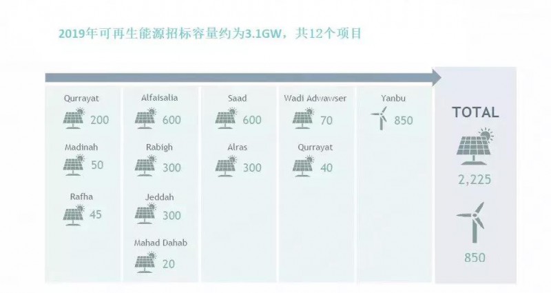 此次小型光伏系统再次被强调,相关光伏企业不得不引起注意 ,沙特光伏市场近几年来发展迅速,2019年沙特的超级项目开始陆续发布招标,预计今年将有3.1GW的可再生能源项目,其中包含2.225GW的光伏项目和850MW的风电项目。