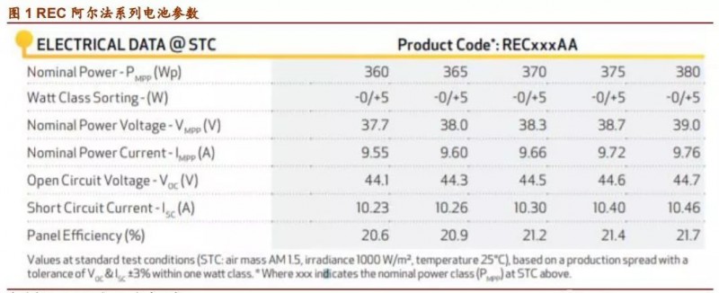除了优异的功率表现外,REC保证 25年功率为初始功率92%,光衰指标较当前的产品有比较显著的优势。同时,REC阿尔法系列组件温度系数优势也比较明显,其最大功率(Pmax)的温度系数为-0.26 %/°C(好于当前技术-0.37%/℃左右的水平),在高温地区发电量优势会更加突出。
