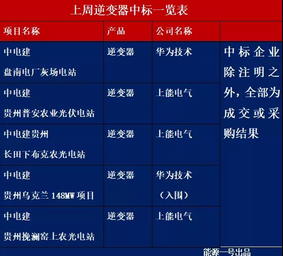 能源一号统计发现,上周期间,就国内各个光伏领跑基地、海外光伏和农业光伏等项目的中标情况看,组件中标及入围的企业主要有:东方日升、亿晶光电、隆基乐叶等。逆变器的中标方(已公开并可查询到的项目)主要为上能电气、华为技术等。