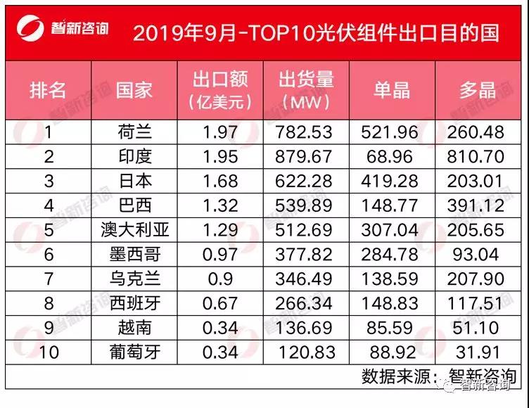 查看全部出口厂商、目的国以及组件价格等更多详情,请联系智新咨询获取完整版《2019年中国光伏组件数据分析报告》,联系人:马小姐 13716196589,吕先生13301301603。