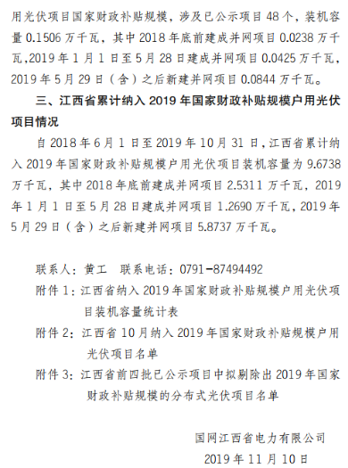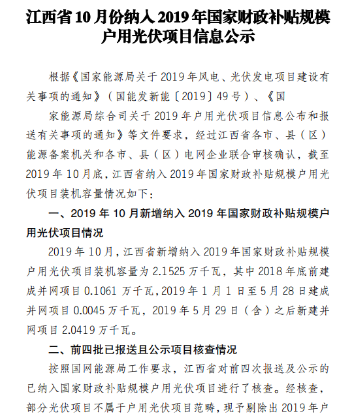 江西拟剔除前四批纳入国补规模户用光伏项目1506.4kW