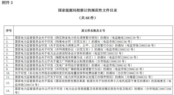 为贯彻落实党中央国务院关于加强法治政府建设和推进简政放权、放管结合、优化服务的要求,营造良好营商环境,对国家能源局和原国家电力监管委员会印发的规范性文件进行了清理,决定废止文件114件,保留文件375件,并拟对原国家电力监管委员会印发的文件68件进行修订。现将废止的规范性文件目录、保留的规范性文件目录和拟修订的规范性文件目录予以公告。