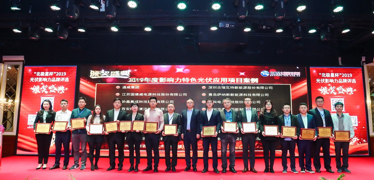 10月24日,2019光伏新时代论坛暨“北极星杯”2019光伏影响力品牌评选颁奖典礼在北京隆重举行,来自光伏产业链各个环节百余家优秀企业欢聚一堂,见证辉煌。古瑞瓦特凭借强大创新力、出色的品质与服务、卓越的品牌影响力赢得用户及行业认可,撷取 “2019年度影响力光伏逆变器品牌”、 “2019年度影响力特色光伏应用项目案例”两项大奖!