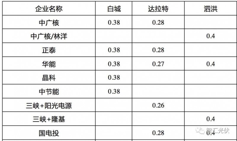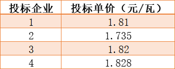 本文统计了4个项目的EPC招标结果,1个项目的组件招标结果。