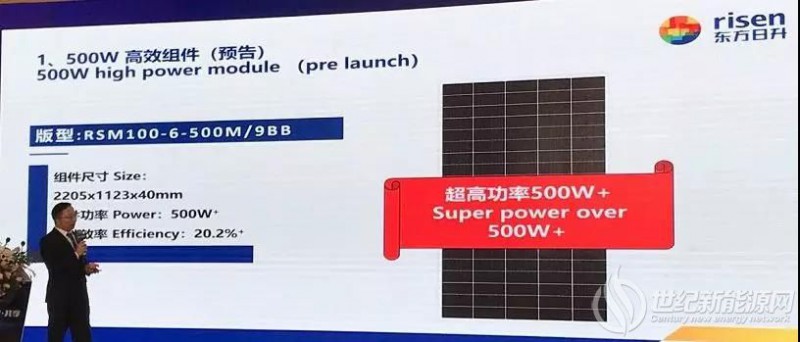 东方日升发布新的500 W高效组件,该组件由210mm的大型M12硅片制成。