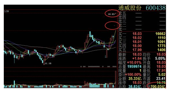 通威的30GW项目、100GW产能目标、HJT新型技术产业化、大尺寸布局,对行业的影响是震撼的。继昨日涨停后,通威股份依旧表现优异,一开盘就再次强势涨停,总市值已超过700亿。