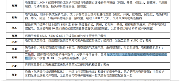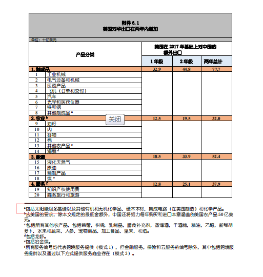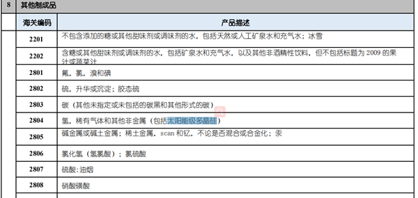 具体细分产品列表中,太阳能级多晶硅和光伏电池两款产品将会扩大对美进口: