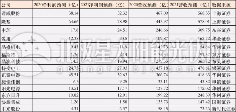 根据华创证券的预测,东方日升在2020和2021两年里增速虽然有所放缓,但将继续保持相对高速增长,分别达到10.92亿和12.91亿。东吴证券则预测晶澳科技未来两年净利可达14.5亿和18.94亿,二者颇多相似,均以海外出口作为业绩支撑。