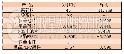 3月上旬,多晶组件受印度财年前抢装,叠加多晶电池片开工率低迷影响,市场整体供需尚能维持平衡,组件和电池片价格表现坚挺。但3月中下旬,印度宣布锁国,市场需求锐减,新订单按下暂停键,多晶组件价格承压,厂家减缓对原料采购,倒逼上游菜花料价格回落。