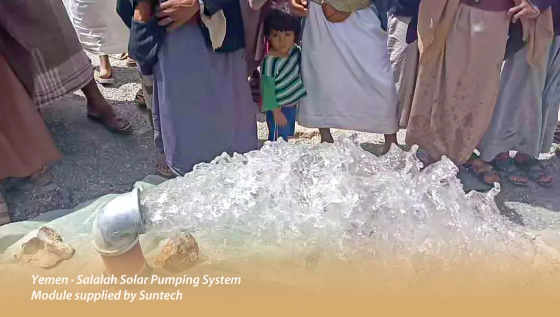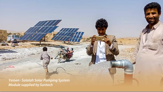 持续数年的军事冲突导致也门的电力供应遭到大幅破坏,在燃料供应短缺的形势下,也门的医院、工厂、农业及许多民众不得不使用太阳能作为替代能源。2019年第四季度起,尚德源源不断地向也门供货约10MW高功率光伏组件,用于也门光伏扬水浇灌系统项目的建设。