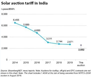 在印度处于全国疫情封锁情况下,印度国有公司NHPC的2吉瓦太阳能光伏招标结果出炉,平均报价2.552卢比/千瓦时(约合3.3美分/千瓦时),比2019年的平均竞价(2.671卢比/千瓦时)低4.7%。