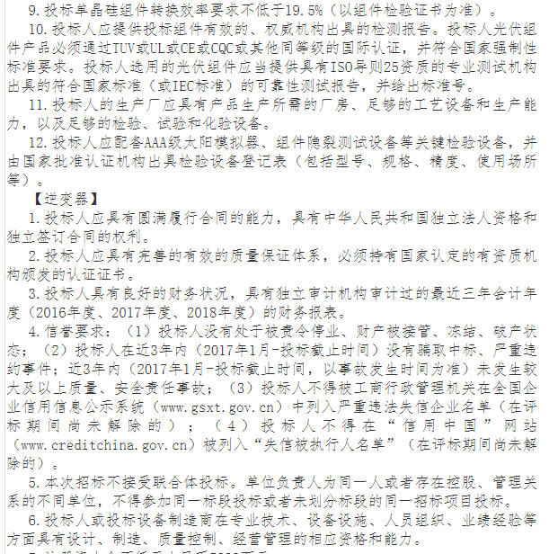 日前,浙江华电湖州南浔三期10.2MW分布式光伏发电项目发布组件及逆变器招标公告,其中组件要求330W及以上单晶组件,含备品备件专用工具及技术服务。逆变器为三相组串逆变器和通信设备。