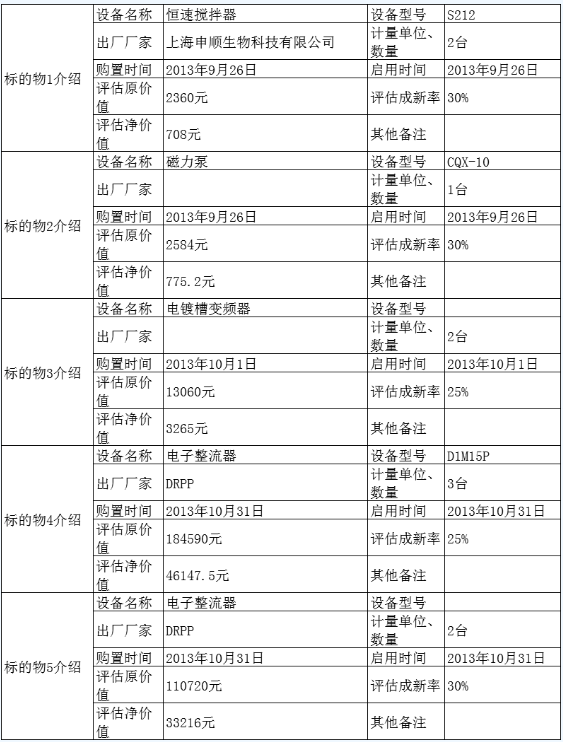 根据拍卖公告,本次拍卖的机器设备共14项,现保存于四川省成都市双流区银河路596号。