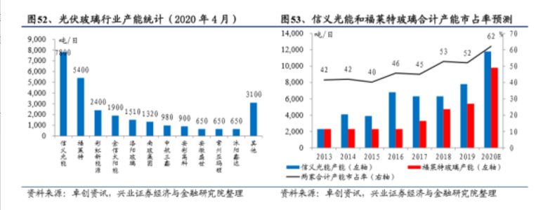 展望2020年后市,需求端随着海外公共卫生事件逐步得到控制和国内需求环比上半年明显增加,而供给端信义光能、福莱特等企业新增产能在2020Q4开开始逐步释放。预计截至2021年底,信义光能和福莱特名义日熔量的占比将超过60%,实际产量占比有望超过70%。