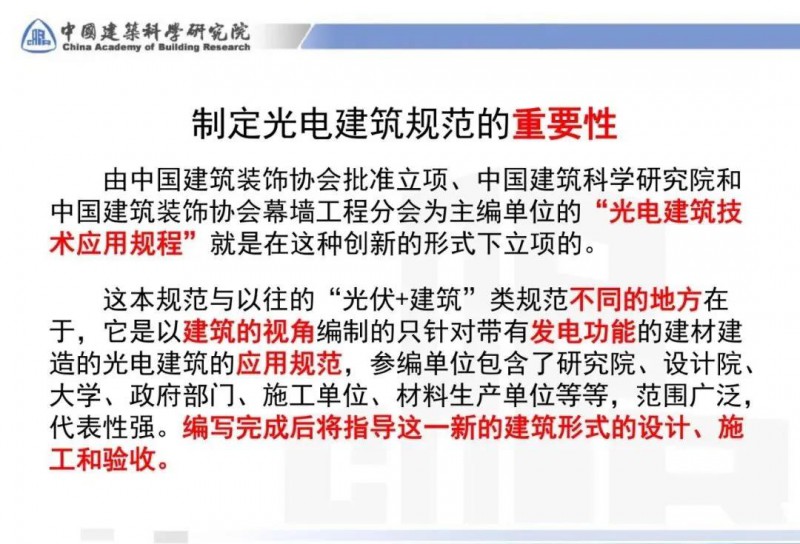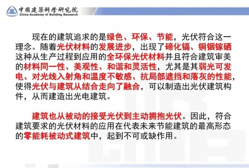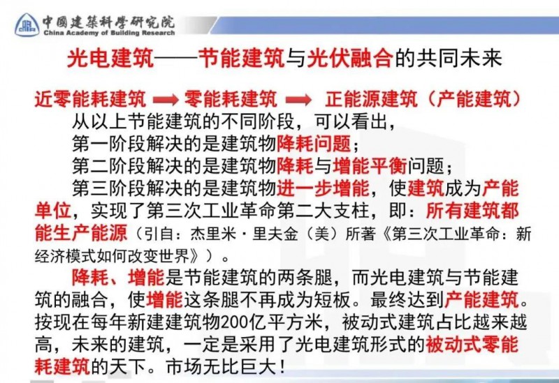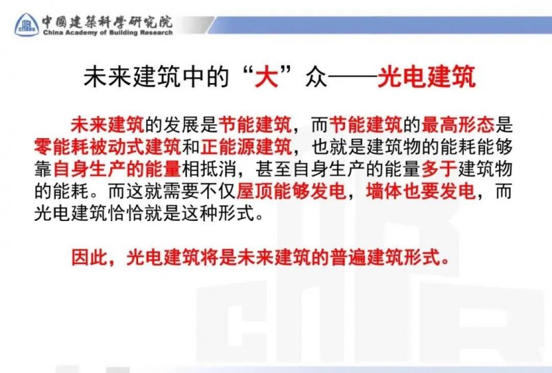 今天给大家分享一下中国建筑科学研究院对光电建筑发展的预判。