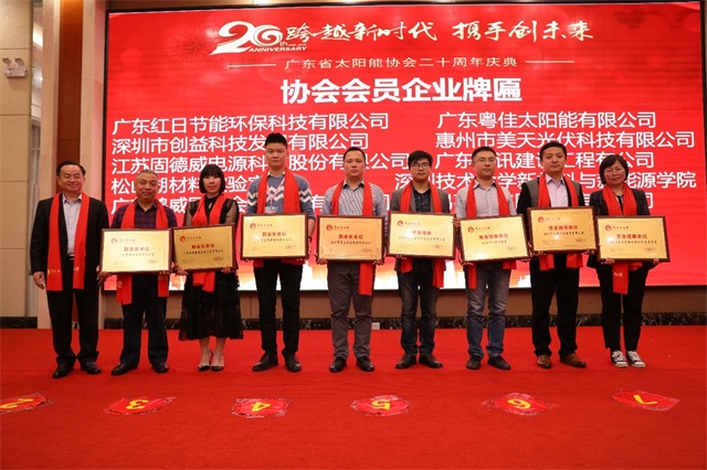 12月18日,2019年广东省太阳能行业发展总结大会暨协会成立20周年庆典活动在广州举行,江苏固德威电源科技股份有限公司(以下简称固德威)作为常务理事单位,参与了此次活动的协办。在前期网络投票环节,固德威凭借着对广东太阳能行业发展和光伏扶贫工作做出的突出贡献,获得业界认可,被评为“广东省太阳能行业优秀企业”和“2019年度广东省光伏扶贫突出贡献奖”。