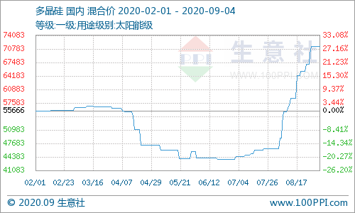 9月4日,周末,国内多晶硅价格行情有所企稳,价格止涨为主,但硅料目前价格仍居高不下,市场仍处于供不应求的局面,市场暂无回调迹象,主要还是因为之前5家企业停产检修或降负荷开工导致市场供应短缺,本周价格明显企稳,得益于新疆地区一些产能陆续恢复,供应量较之前期略有增加。但多数企业库存保持低位运行,部分地区供应偏紧,企业签单情况延续,厂家陆续签订10月订单。据生意社监测,型号为一级太阳能料的多晶硅国内目前主流成交价在68000-75000元/吨。