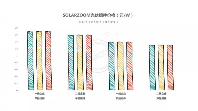 本周国内市场高功率组件价格基本维稳,但部分厂商、部分功率段组件价格略有下滑,目前主流市场主流单晶功率组件的主流厂商价格区间仍在1.6-1.7元/W,但同时市场低于1.6元/W的价格也在逐步增多。需求方面,国内市场普遍预期四季度需求较好,国内主流一线厂商基本保持满产生产,部分组件厂商也是外放了代工订单。