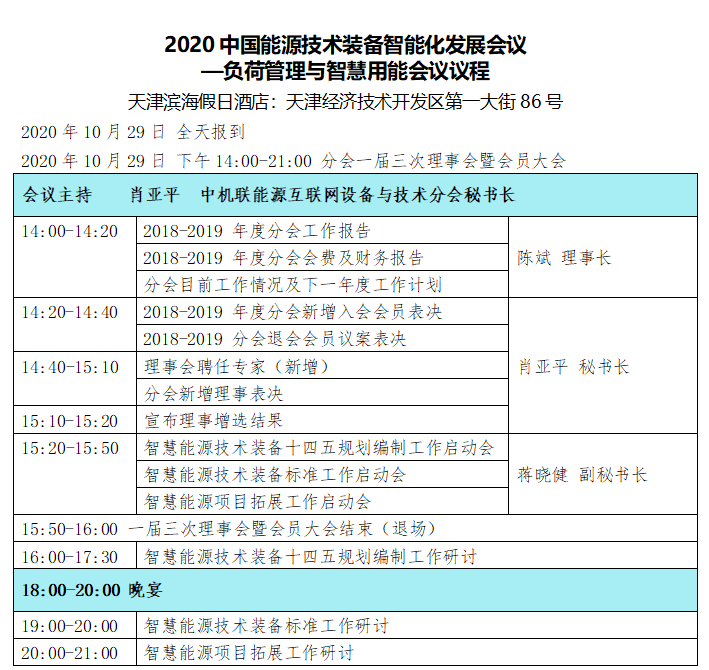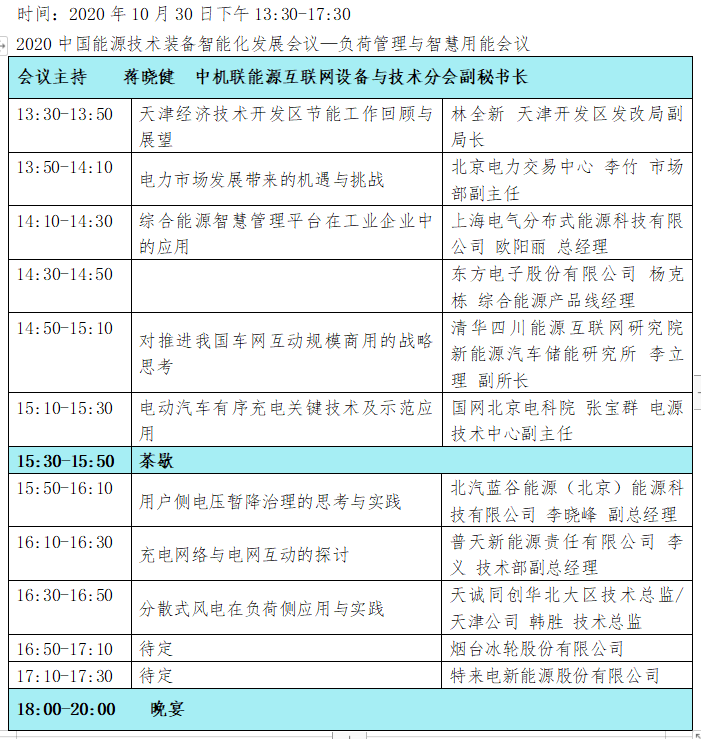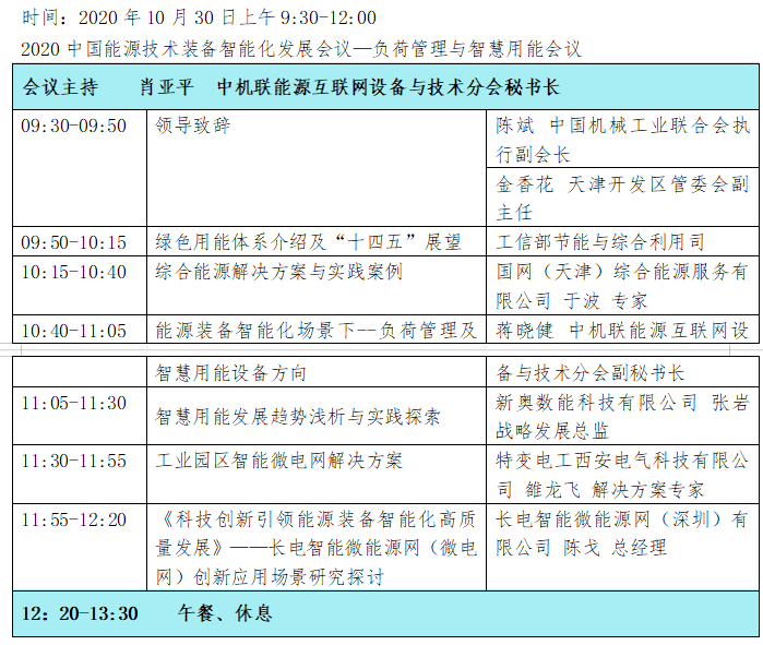 从中国机械工业联合会能源互联网设备与技术分会秘书处获悉,2020中国能源技术装备智能化发展会议—负荷管理与智慧用能会议,将于2020年10月29日在天津滨海假日酒店隆重召开。