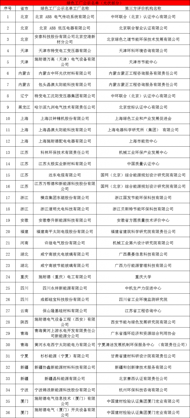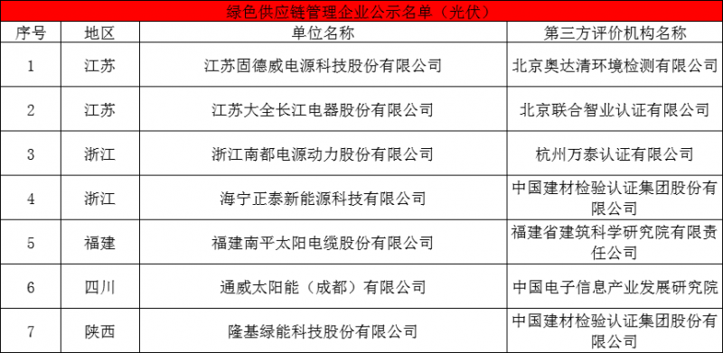 10月29日,工业和信息化部办公厅发布关于公布第五批绿色制造名单的通知,据索比光伏网统计,特变、中环、晶澳、嘉寓光能、晶科、隆基、四川永祥、南玻等36个光伏企业入围绿色工厂公示名单;隆基绿能、亚洲硅业、新特能源、四川永祥等7企入围绿色设计产品公示名单;固德威、大全、正泰、通威、隆基绿能等7家光伏企业入围绿色供应链管理企业公示名单。