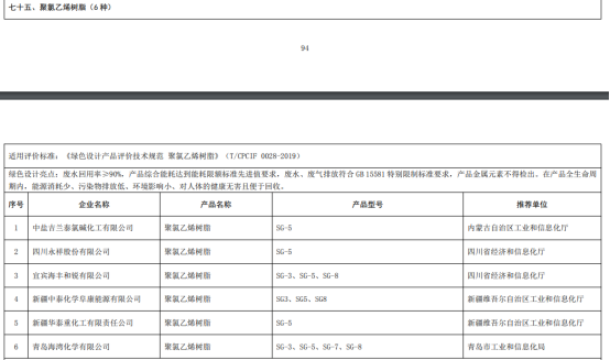 绿色设计产品公示名单: