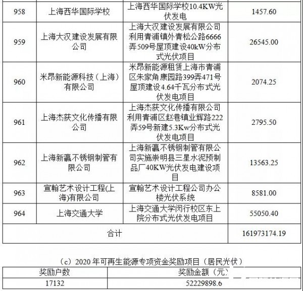 上海市2020年度可再生能源专项资金拨付计划(草案)公示