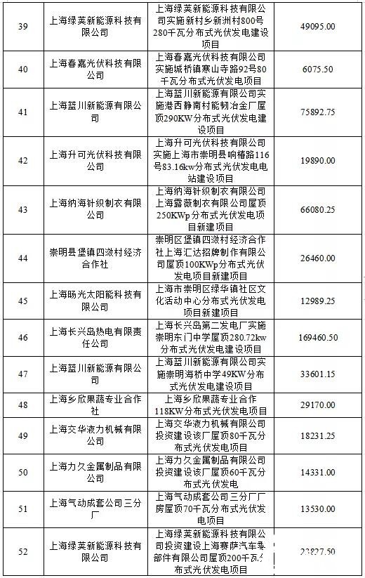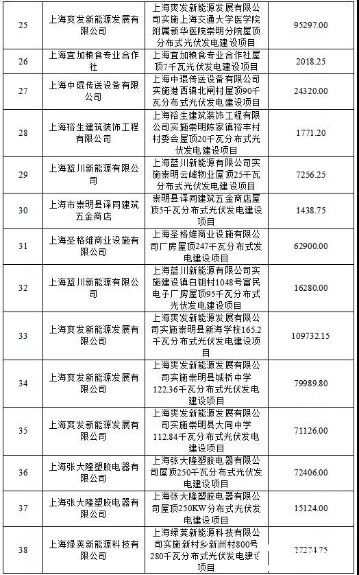 经市电力公司统计、申请,并委托市节能减排中心评估核实,拟将以下项目纳入2020年度可再生能源专项资金拨付计划(草案),现予以公示。公示日期:2020年12月4日至2020年12月10日,公示电话:021-23112992,021-23112865。
