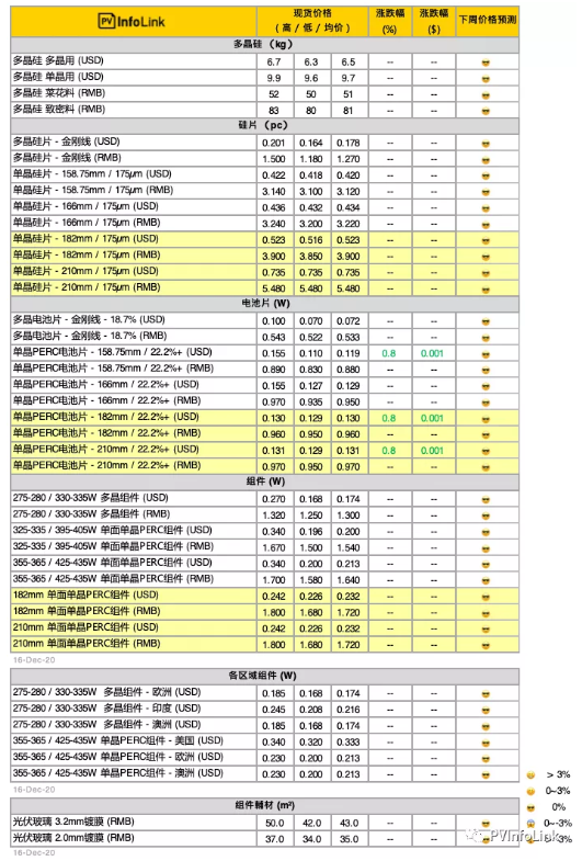 PV Infolink现货价格信息中,人民币价格皆为中国内需报价,而美金显示之价格则为非中国地区的海外价格,并非人民币直接换算美金。