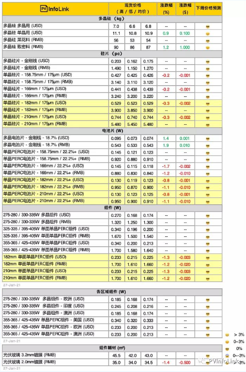 PVInfolink的现货价格主参考超过100家厂商之资讯。主要取市场上最常成交的“众数”资料作为均价(并非加权平均值)、但每周根据市场氛围略有微调