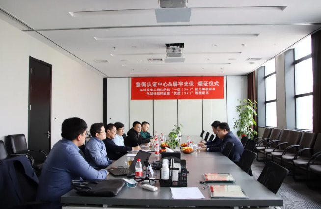 鉴衡认证中心常务副主任王巍、副主任纪振双,展宇光伏总经理宋钰、市场部总监姜丞等出席颁证仪式。